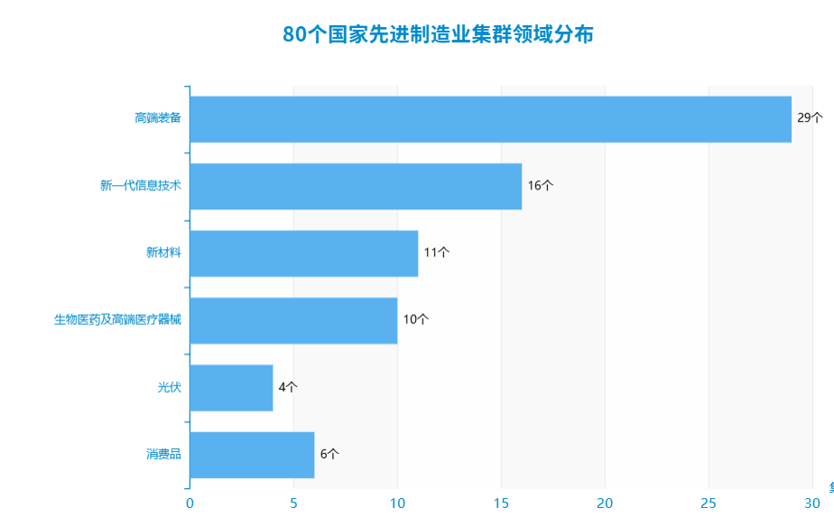 其次,先进制造业集群在传统制造业向高端升级方面发挥重要作用。目前全国已有80个国家先进制造业集群,分布在新能源及智能网联汽车、新材料、高端装备、生物医药及医疗器械、新一代信息技术等领域。例如,在高端装备领域有29个集群,新一代信息技术领域16个,新材料领域11个,新能源与智能网联汽车领域11个,生物医药及高端医疗器械领域10个,消费品领域6个,光伏领域4个。这些集群覆盖了从基础材料、关键部件到整机制造的完整链条,形成了区域化、专业化的产业集群效应。