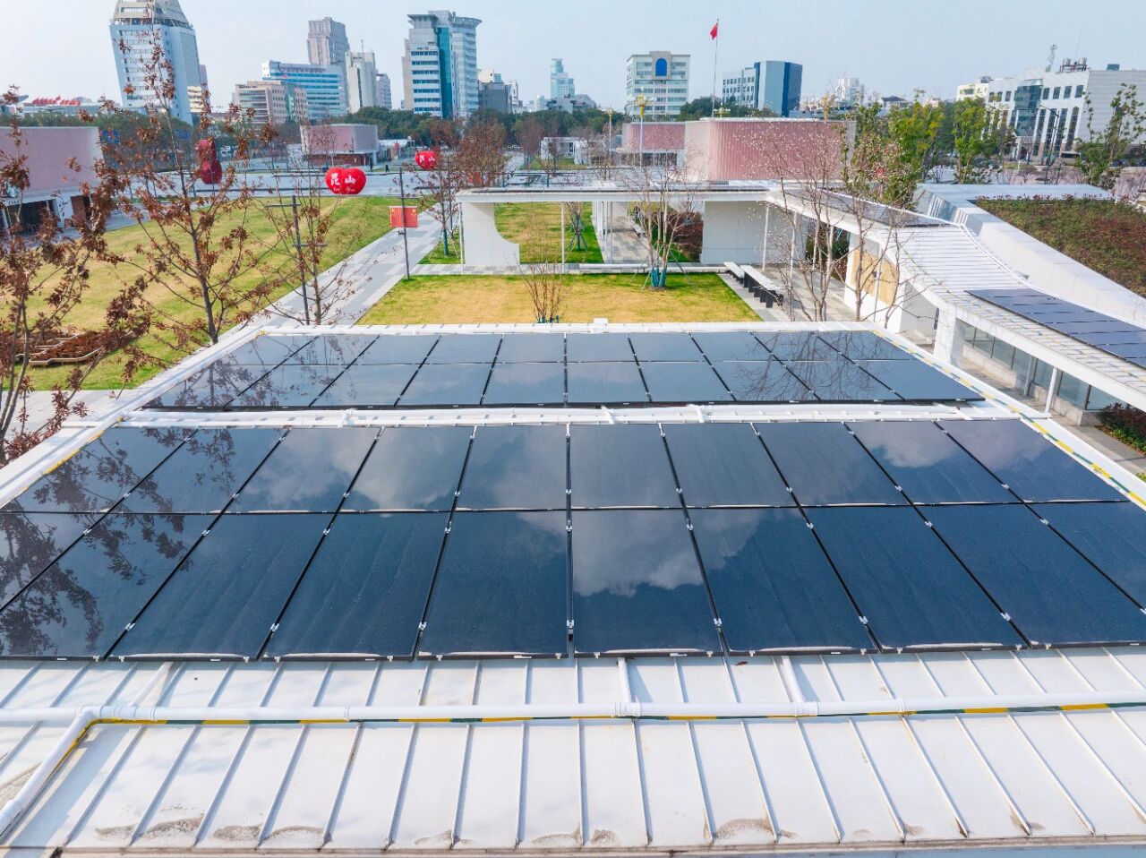 项目并网后,所发电量优先满足广场公共设施用电,余电接入区域电网,有效缓解高峰负荷压力,助力昆山打造“零碳城市”新样板,也为全国新型建筑光伏一体化发展提供可复制、可推广的实践范例,为后续城市更新与新建建筑提供了低碳化建设新路径。